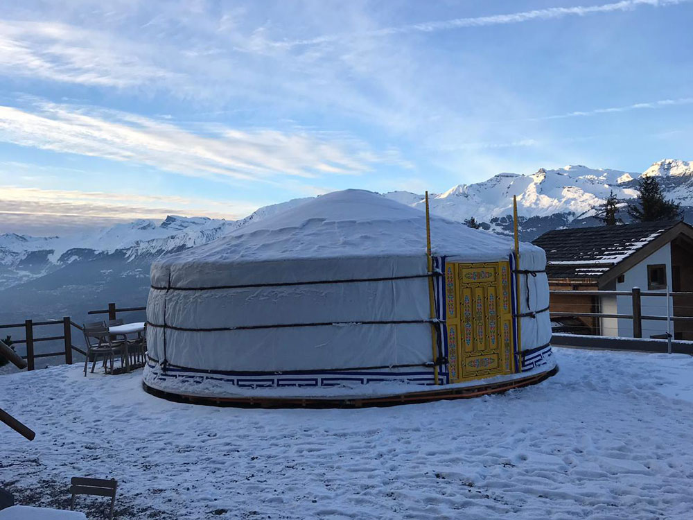 Notre nouvelle yourte à fondues et raclettes se trouve dans notre cadre grandiose avec une magnifique vue sur la vallée du Rhône et l’arc alpin. Un concept 100% éco-responsable dans le respect de la nature qui nous entoure.