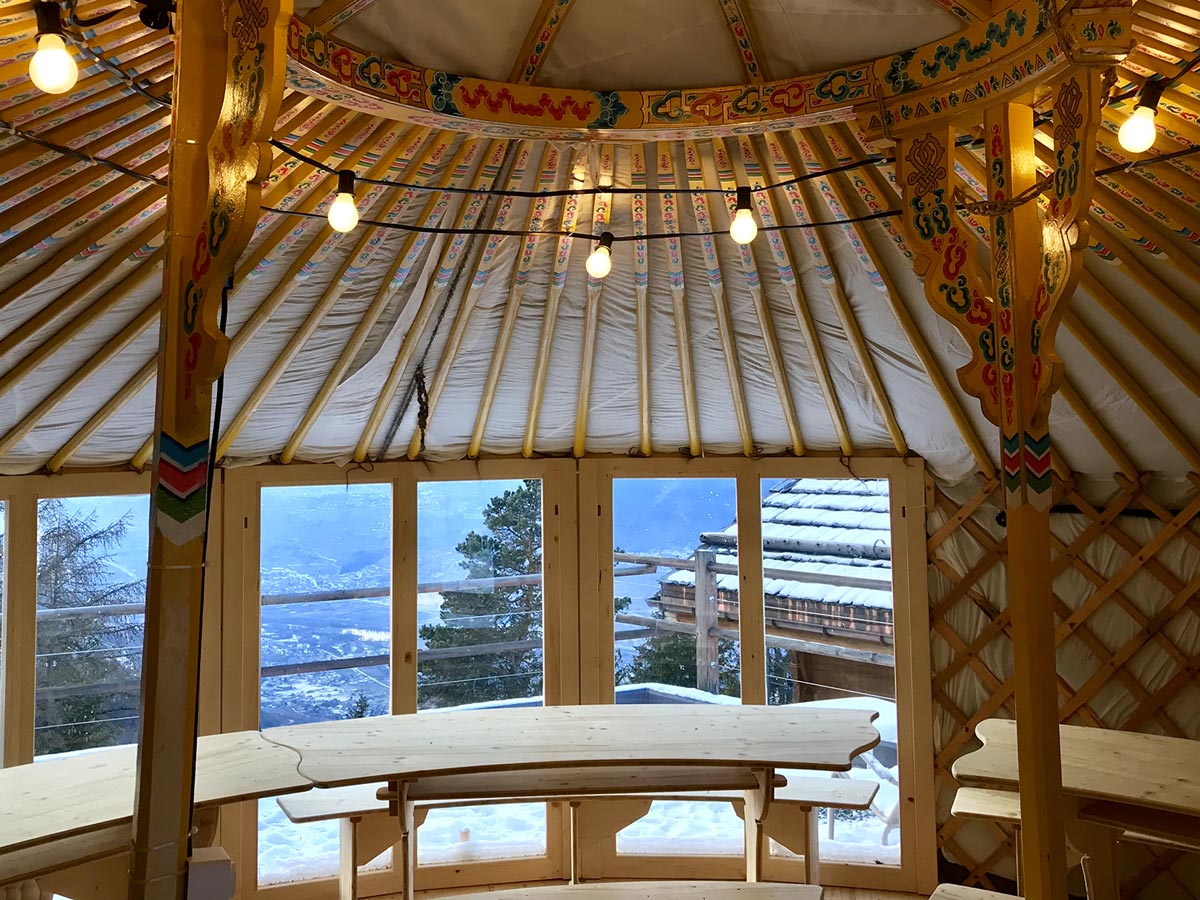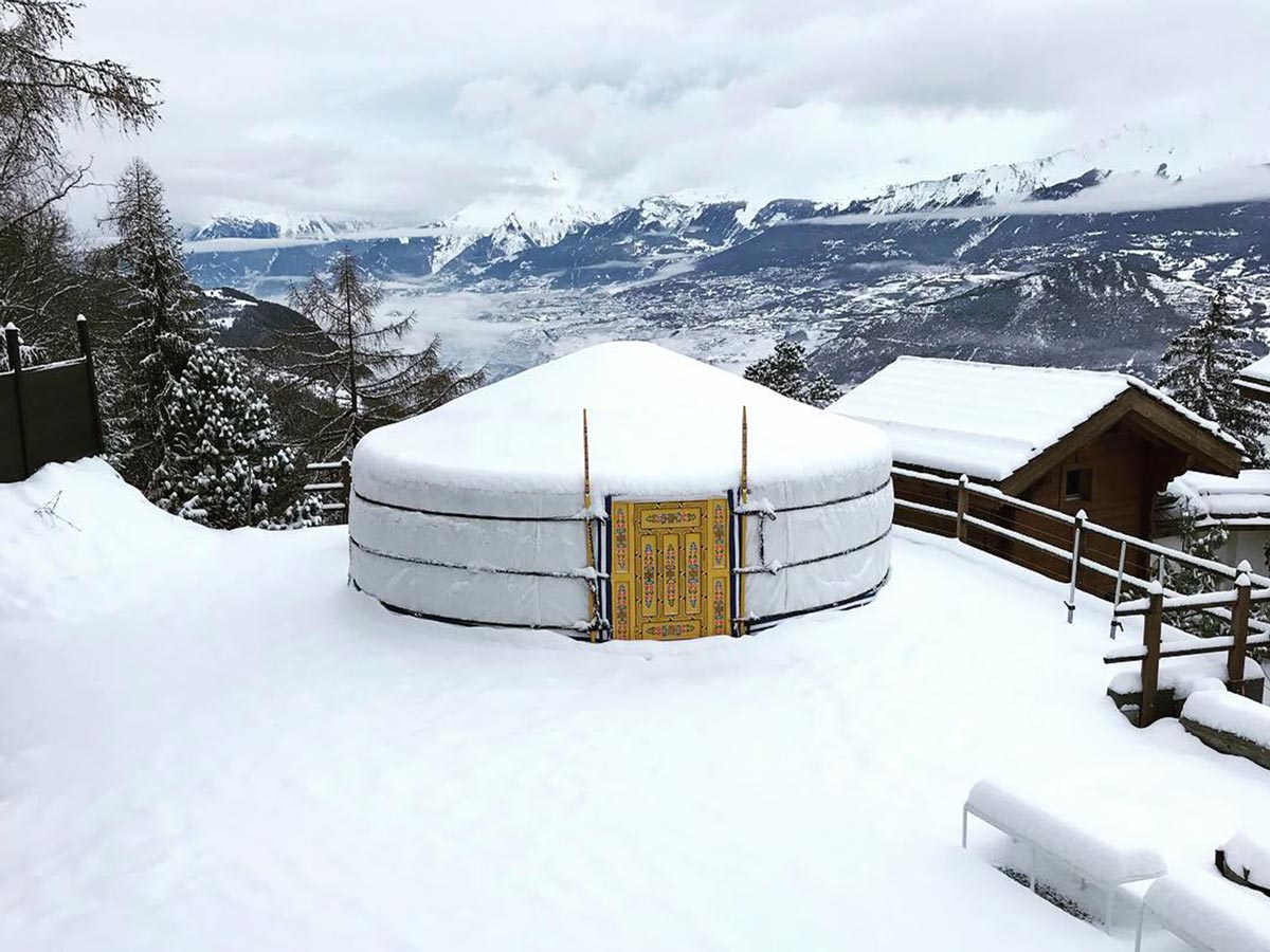 Notre nouvelle yourte à fondues et raclettes se trouve dans notre cadre grandiose avec une magnifique vue sur la vallée du Rhône et l’arc alpin. Un concept 100% éco-responsable dans le respect de la nature qui nous entoure.